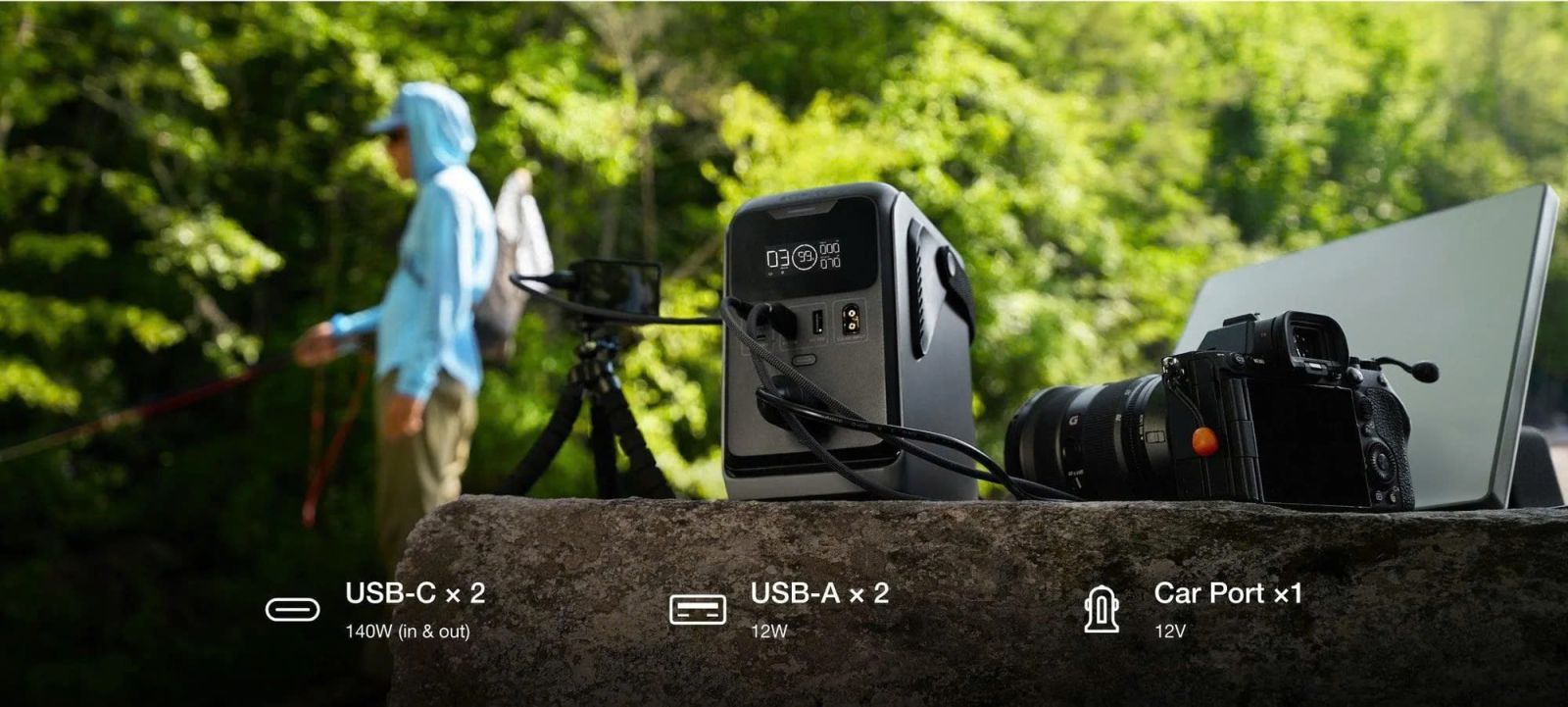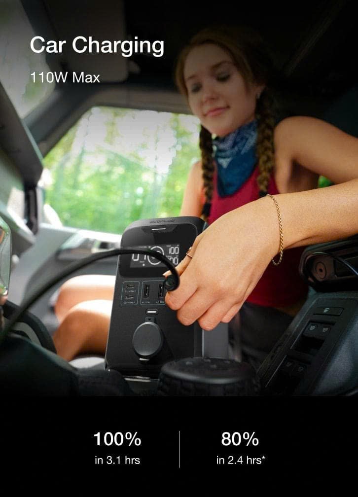 Tận hưởng sự linh hoạt với khả năng sạc lại qua USB-C, cổng xe hơi hoặc tấm pin năng lượng mặt trời, mang đến nguồn điện tin cậy trong mọi tình huống ngoài trời.