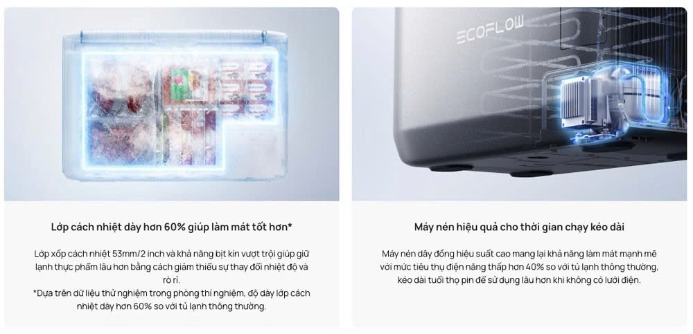 - Làm mát hiệu quả: Máy nén dây đồng hiệu suất cao làm mát nhanh hơn với mức tiêu thụ điện năng thấp hơn, do đó kéo dài tuổi thọ pin khi sử dụng ngoài lưới điện.
