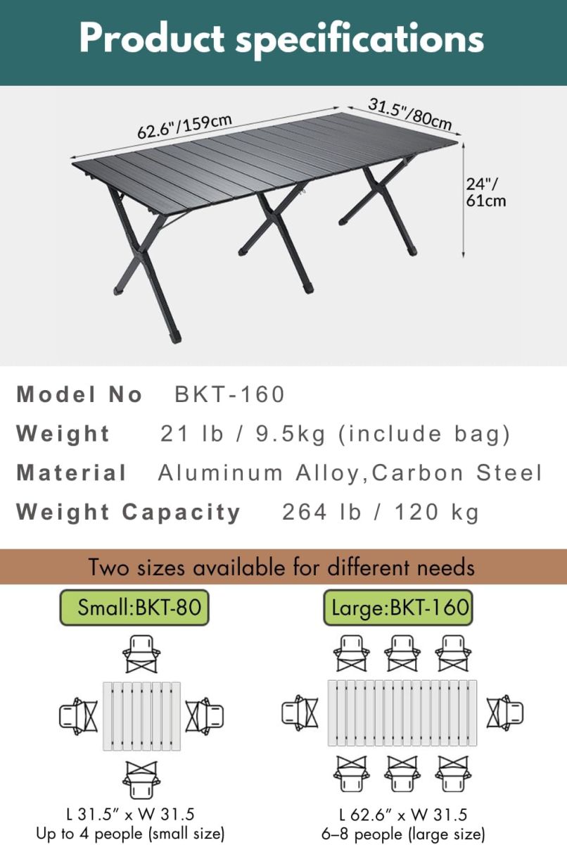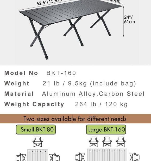 Bàn cuộn nhôm xếp gọn Campingmoon BKT-160 BKT160