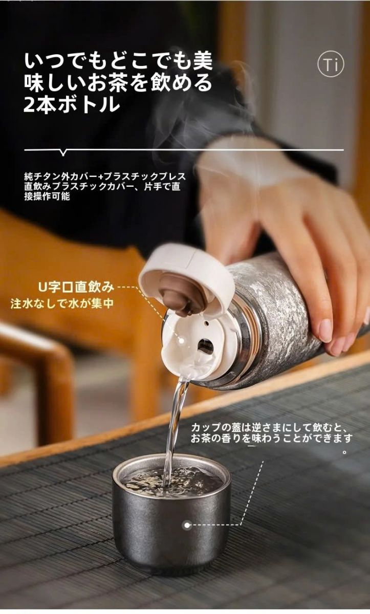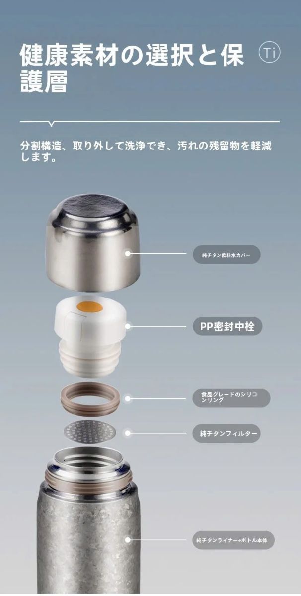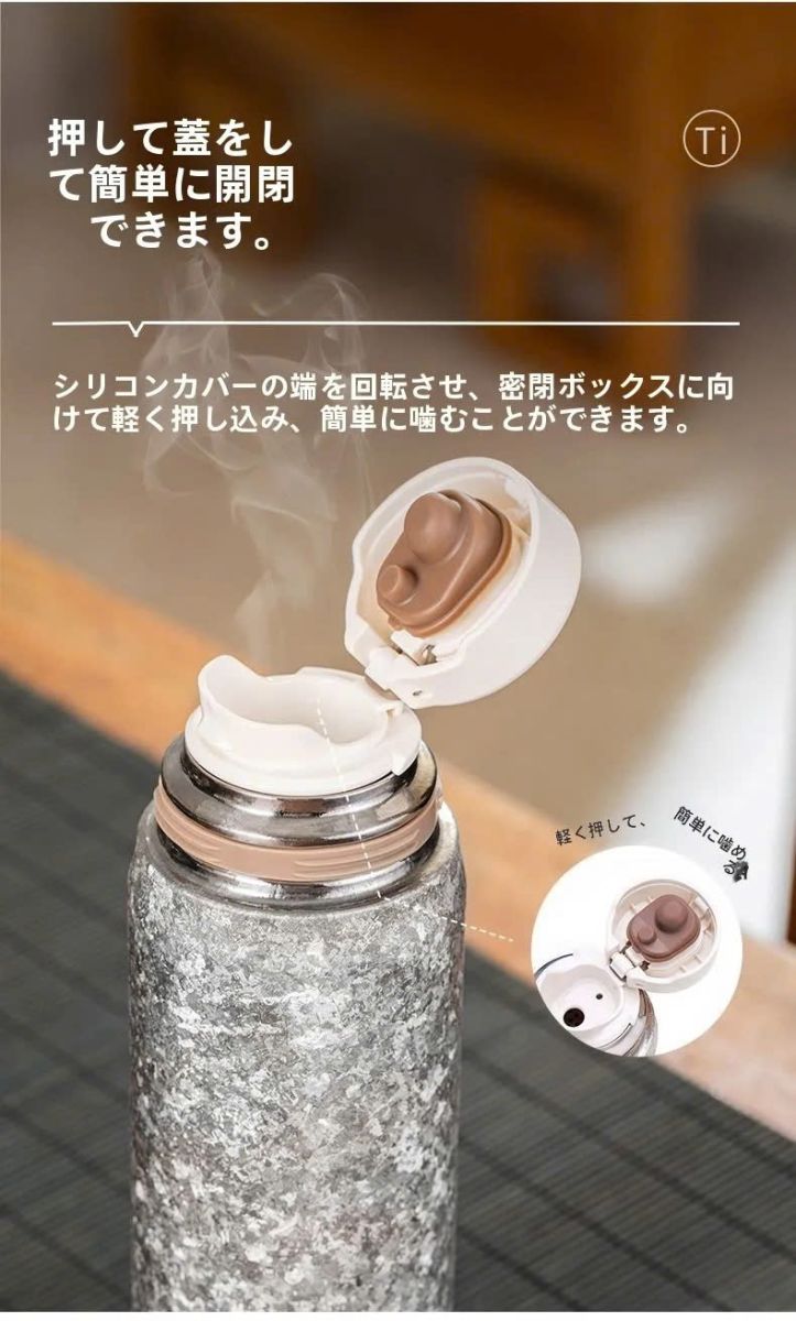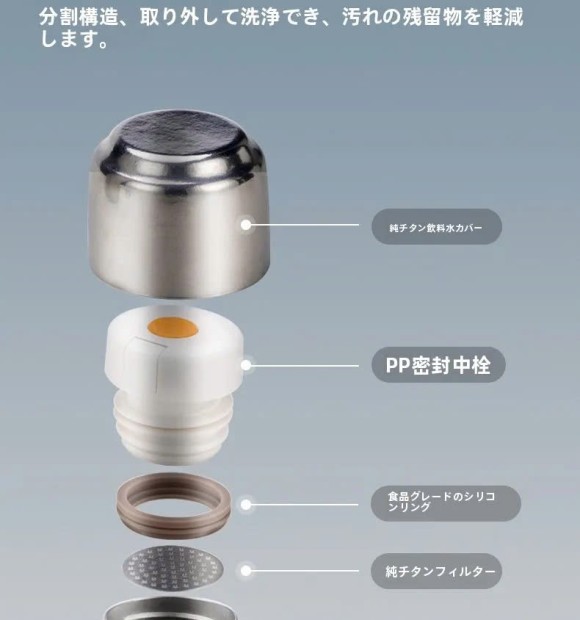 Thiết kế chống rò rỉ của những bình này, với gel silicon, đảm bảo túi của bạn luôn khô ráo. Nắp được làm bằng titan nguyên chất 2 lớp bạn có thể sử dụng làm ly uống nước, đảm bảo trải nghiệm uống lành mạnh hơn.