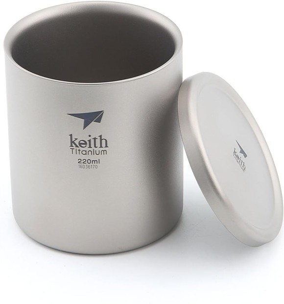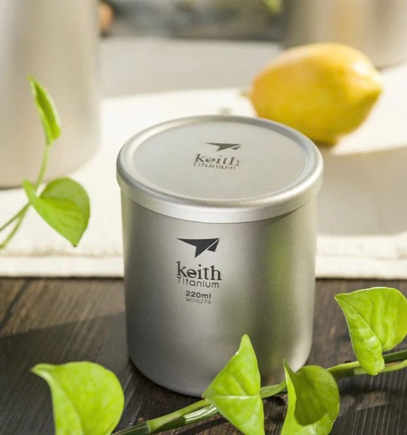 - Cốc titanium 2 lớp có nắp Keith Titanium Ti3301 220ml