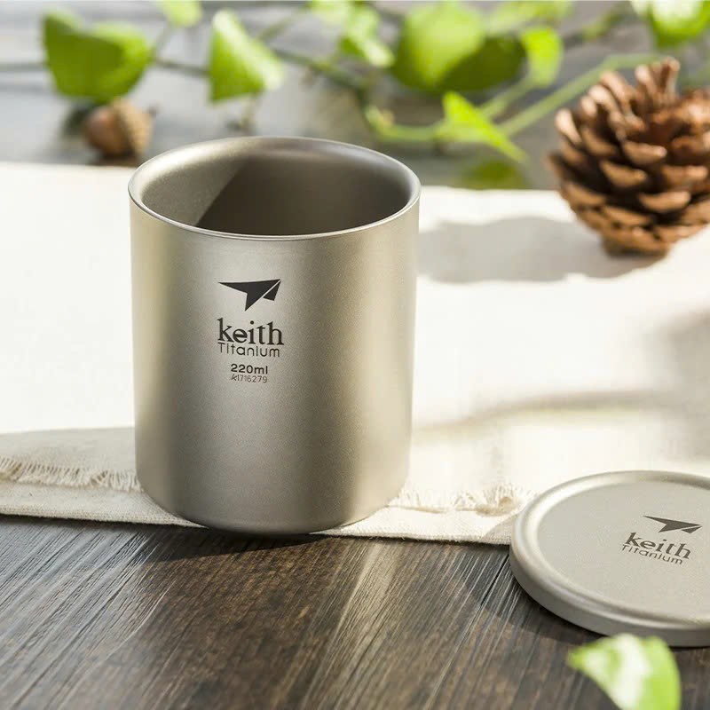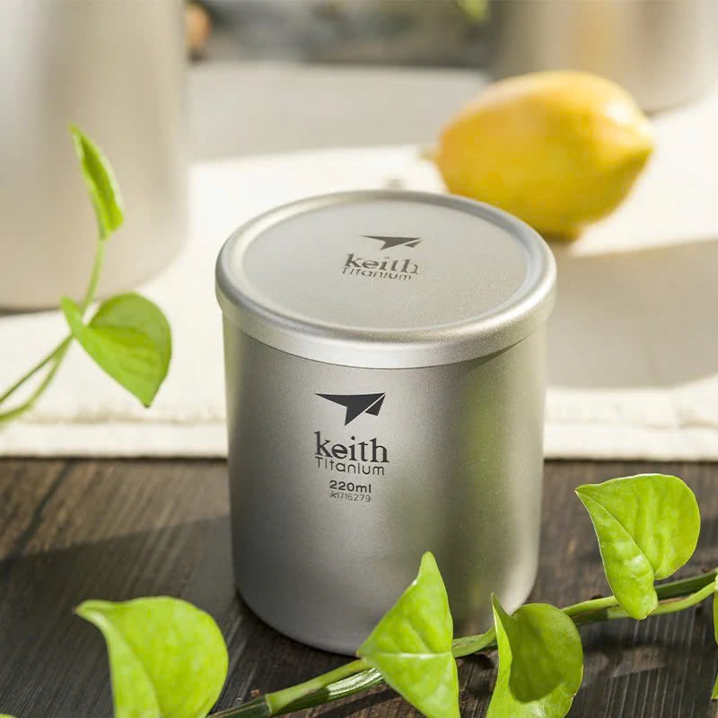 Cốc titanium 2 lớp có nắp Keith Titanium Ti3301 220ml
