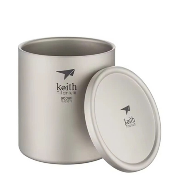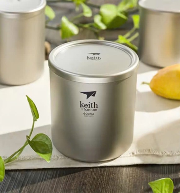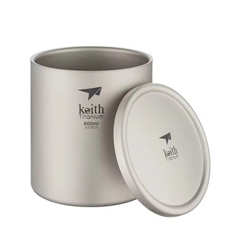 Cốc titanium 2 lớp có nắp Keith Titanium Ti3307 600ml