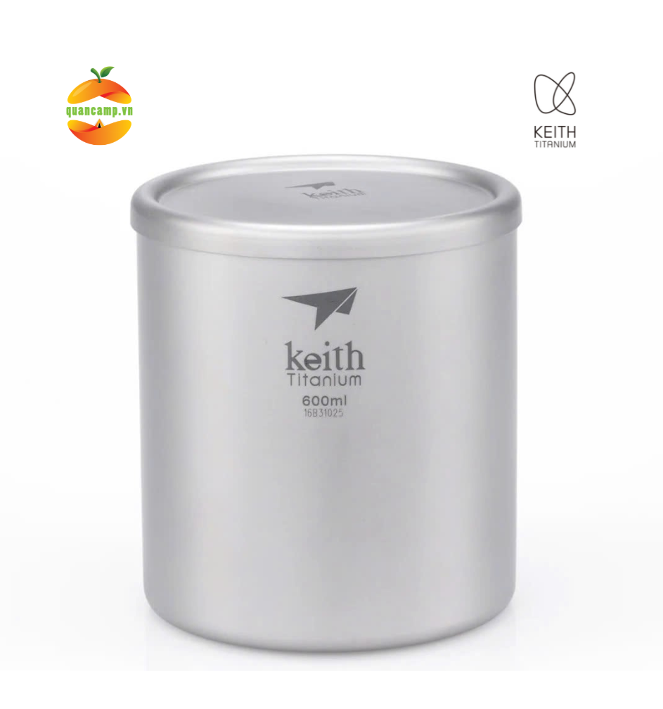 - Cốc titanium 2 lớp có nắp Keith Titanium Ti3307 600ml
