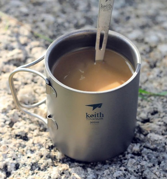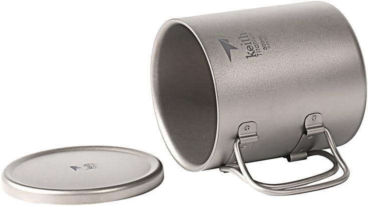 Cốc sứ Keith Titanium 10.1 fl oz hai lớp có quai gấp và nắp được làm bằng titan nguyên chất cao cấp, không có lớp lót và lớp phủ. Sản phẩm không vị, không mùi, không độc hại và an toàn với máy rửa chén.