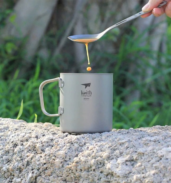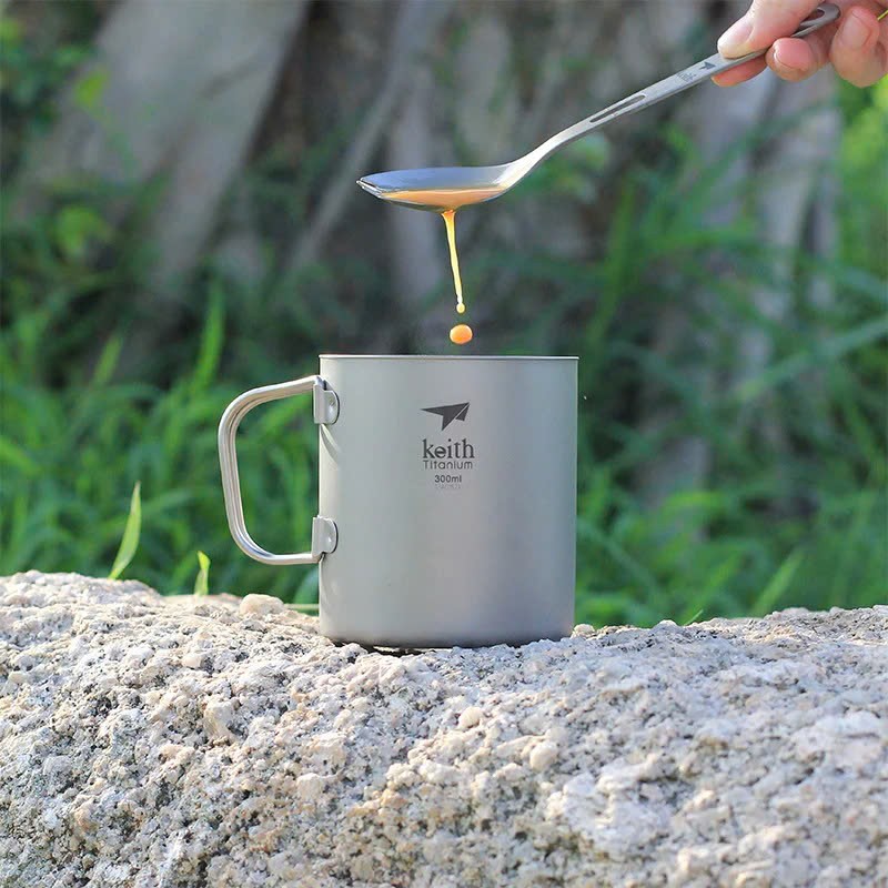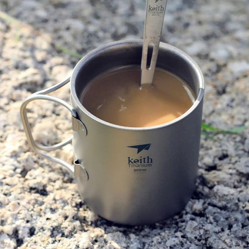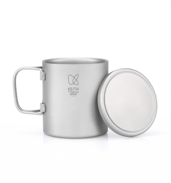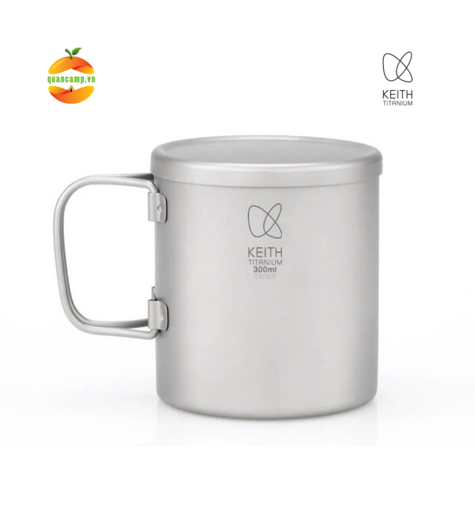 - Cốc titanium 2 lớp có nắp và quai Keith Titanium Ti3352 300ml