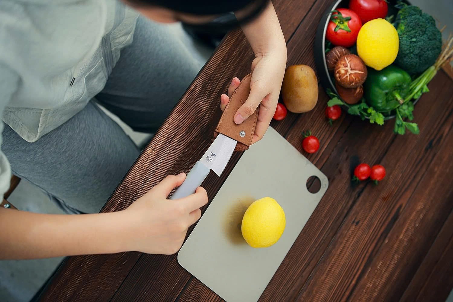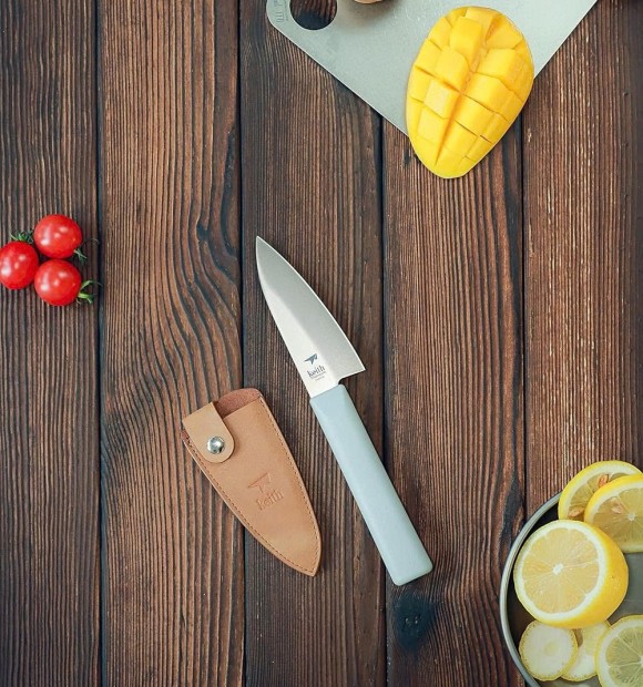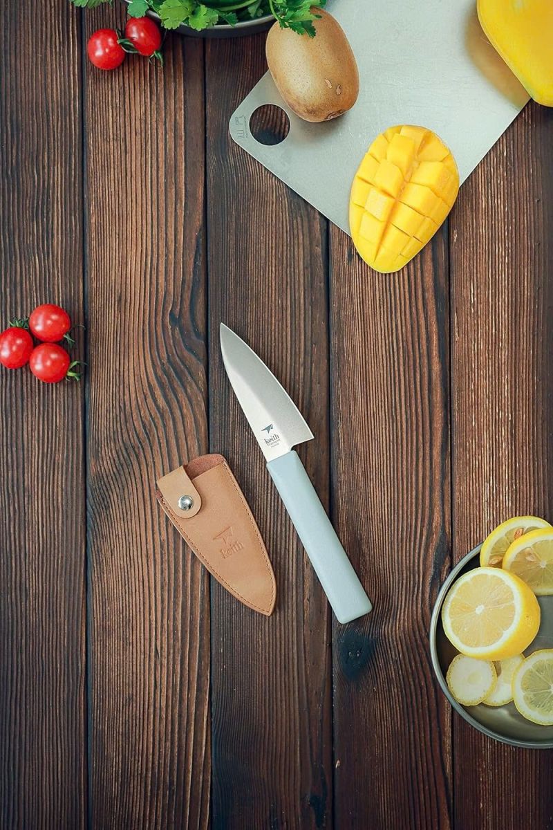 Dao bếp siêu nhẹ Titanium Keith Ti8741 được chế tạo bởi công nghệ kết hợp ba vật liệu bạc-titan-sứ, chỉ đứng sau độ cứng của kim cương, giữ cạnh tốt hơn, không mùi, không vị
