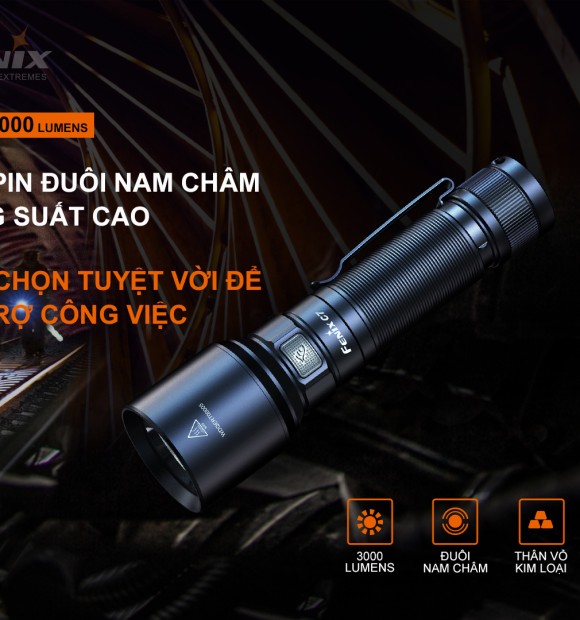 Đèn pin Fenix C7 là mẫu đèn pin hiệu suất cao, là công cụ hoàn hảo cho làm việc và hoạt động bảo trì. Đèn pin siêu sáng Fenix C7 có độ sáng tối đa 3000 lumens, chiếu xa đến 470m.