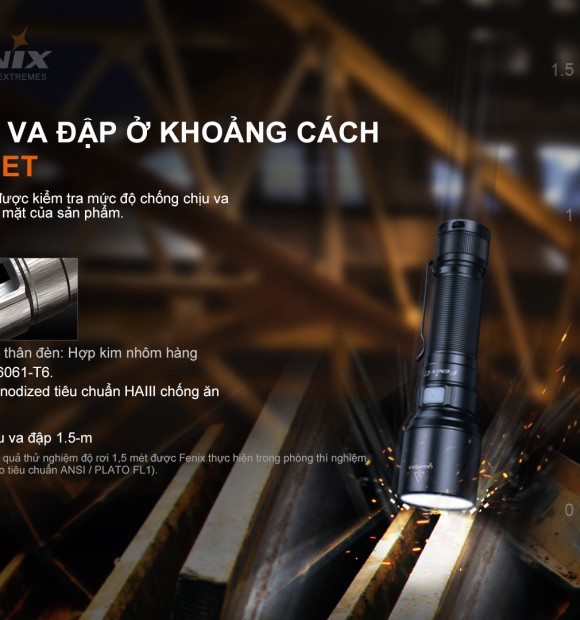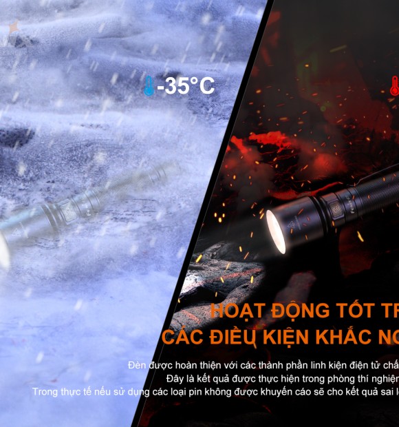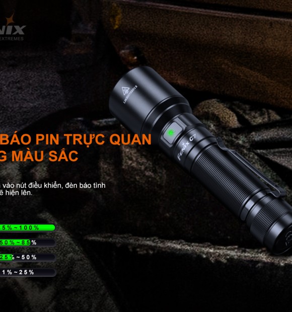 - Đèn pin Fenix C7 có thể hoạt động tốt trong các điều kiện nhiệt độ, thời tiết nhờ khả năng tản nhiệt tốt.
