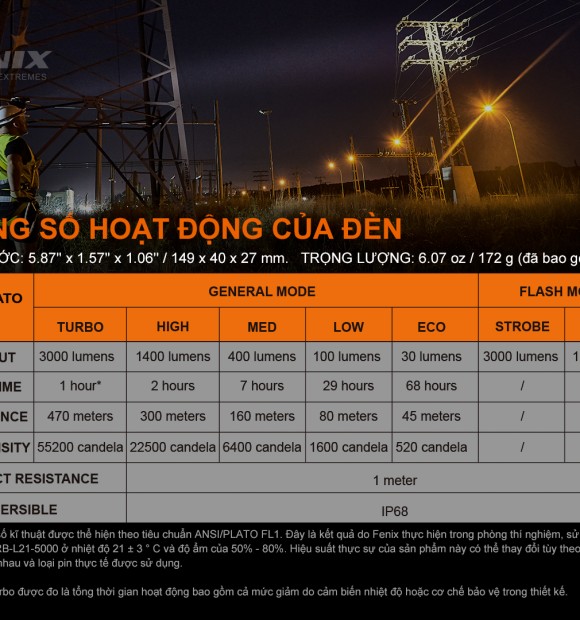 Hiệu năng/Thông số của đèn pin Fenix C7 Luminus