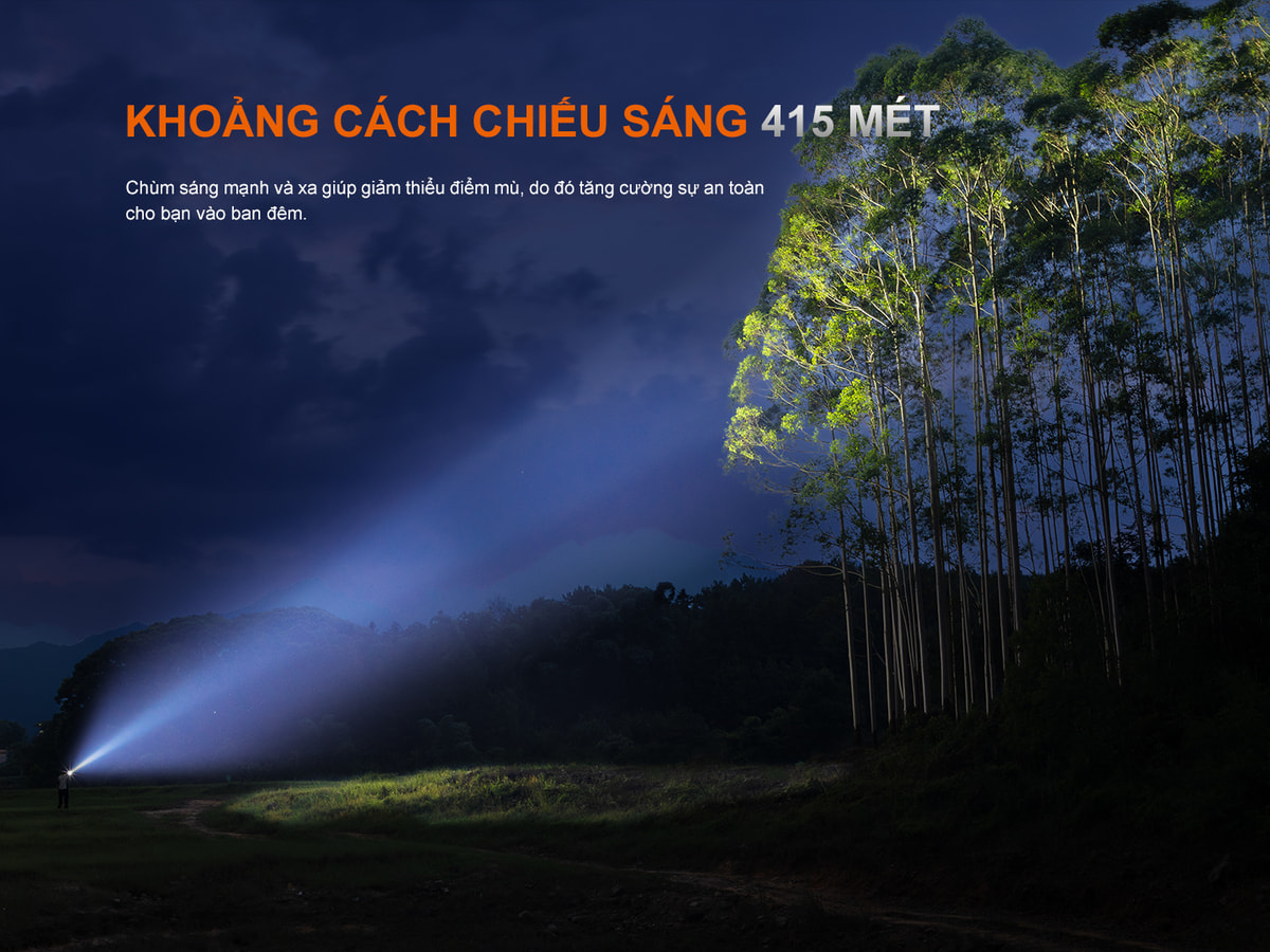 Fenix PD36R ACE đánh dấu bước đột phá lớn của Fenix khi vượt qua giới hạn công suất trên hai thế hệ tiền nhiệm PD36R và PD36R V2.0. Lần này, cây đèn được nâng lên mức 3.000 lumens cùng tầm chiếu xa 415 mét, mang đến hiệu suất chiếu sáng mạnh mẽ và vượt trội.