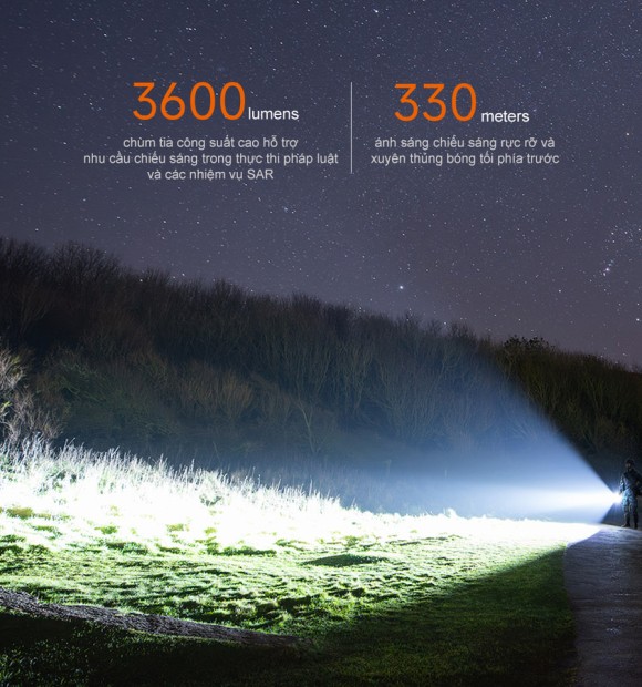 Fenix TK17 có công suất tối đa 3600 lumens với tầm chiếu 330 mét.