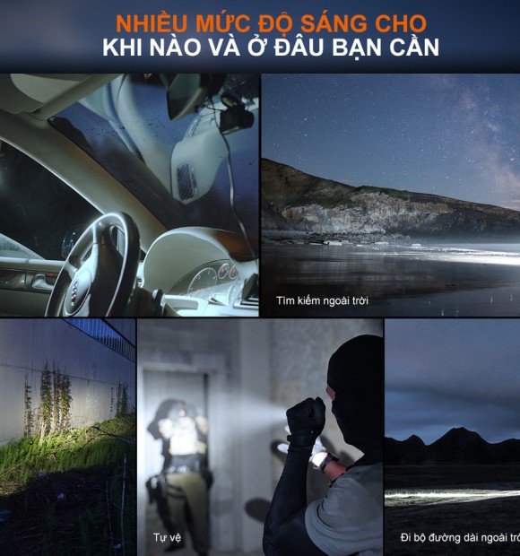 Giao diện sử dụng tối giản – hiệu quả cao: Đèn chỉ có 3 mức sáng chính + Burst + Strobe, giúp người dùng dễ nhớ, thao tác nhanh – tránh nhầm lẫn trong tình huống khẩn cấp.
