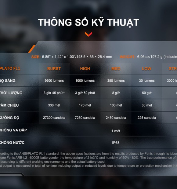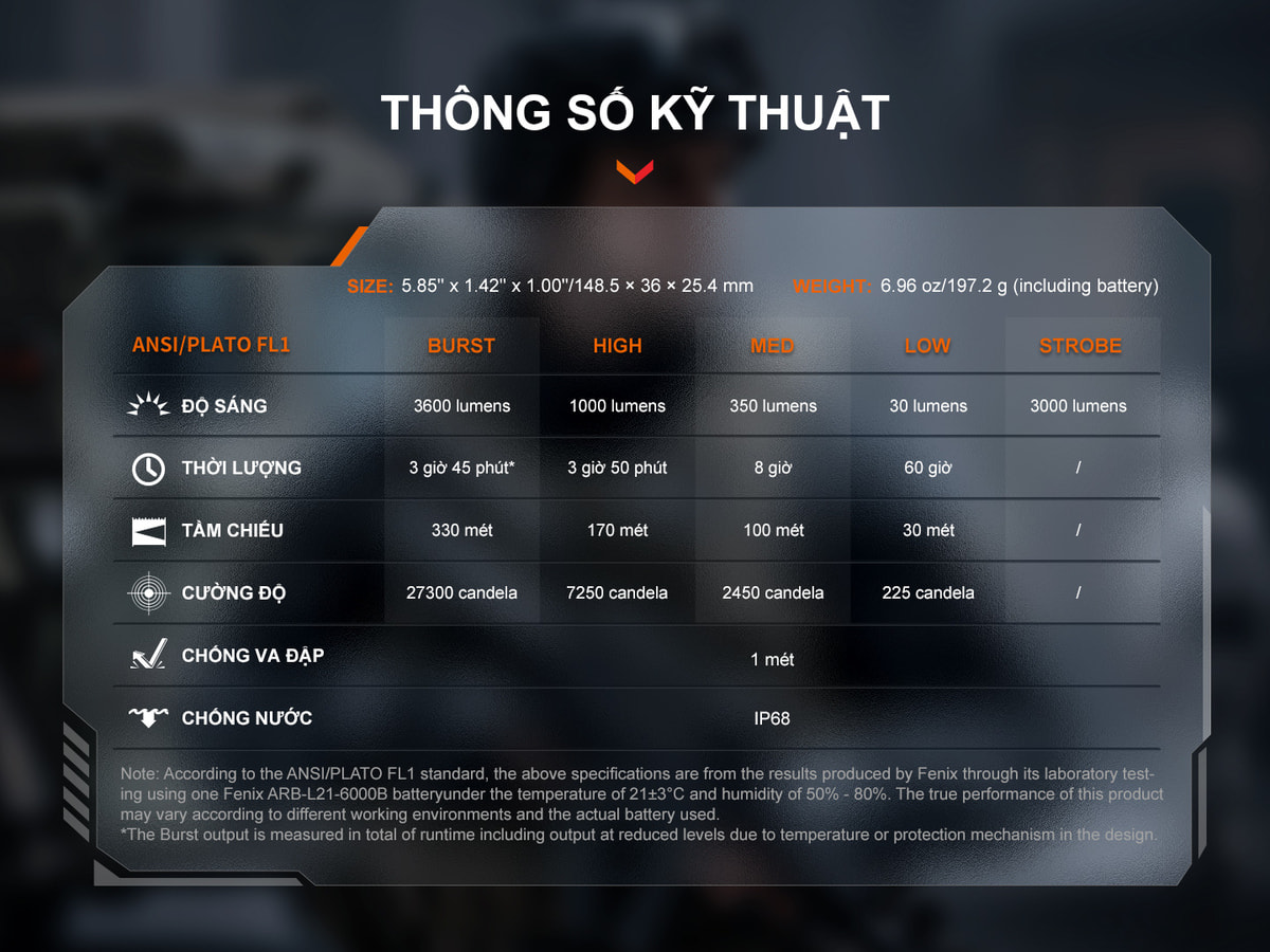Hiệu năng/Thông số của đèn pin Fenix TK17