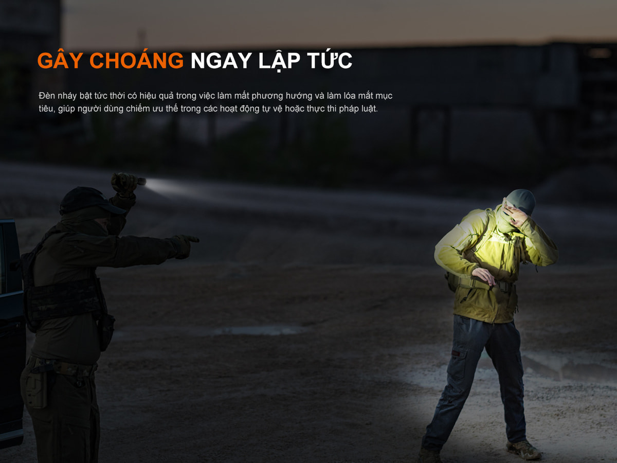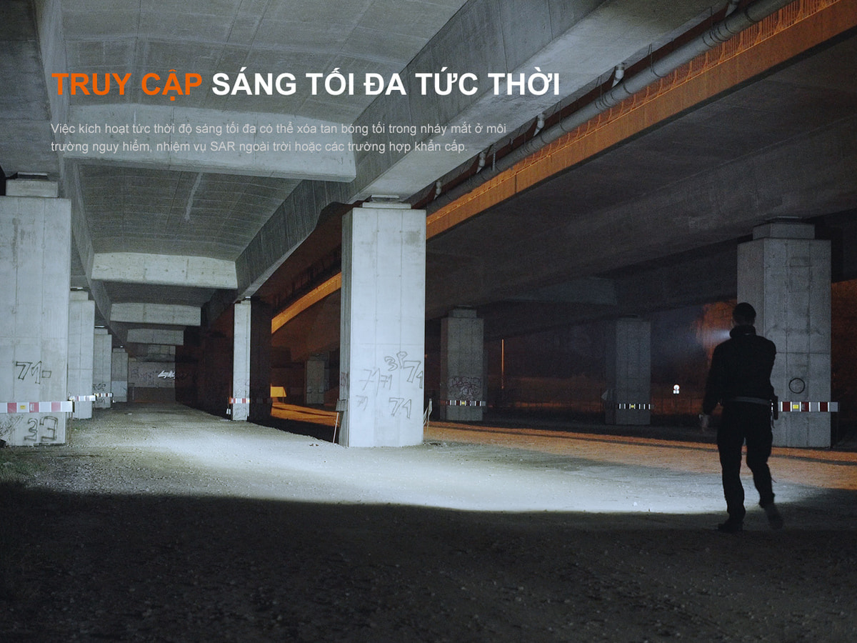 Fenix TK17 được trang bị 4 chế độ sáng: Low – Medium – High – Burst, kết hợp thêm chế độ Strobe truy cập cực nhanh chỉ với một cú nhấn. Tính năng này không chỉ hữu ích trong việc phát tín hiệu hay cảnh báo khẩn cấp, mà còn có giá trị chiến thuật cao khi dùng để trấn áp hoặc tự vệ trong những tình huống bất ngờ.