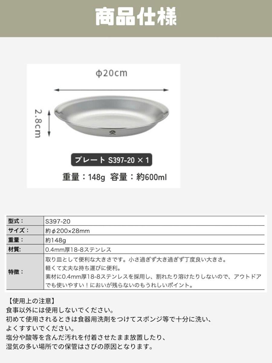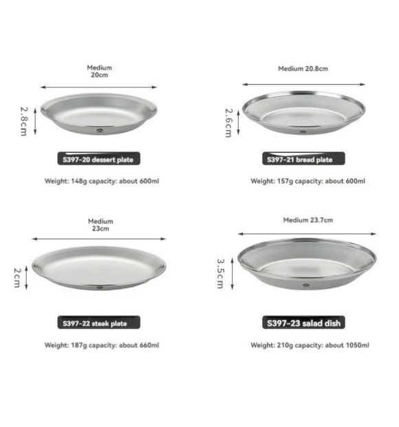 - Đĩa ăn Inox cỡ lớn Campingmoon S397-20 / S397-21 / S397-22 / S397-23