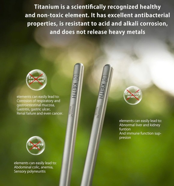 Đũa titan siêu nhẹ của KEITH được sản xuất bằng quy trình đúc chân không đặc biệt, không hàn. Sản phẩm mịn màng và êm ái khi cầm.