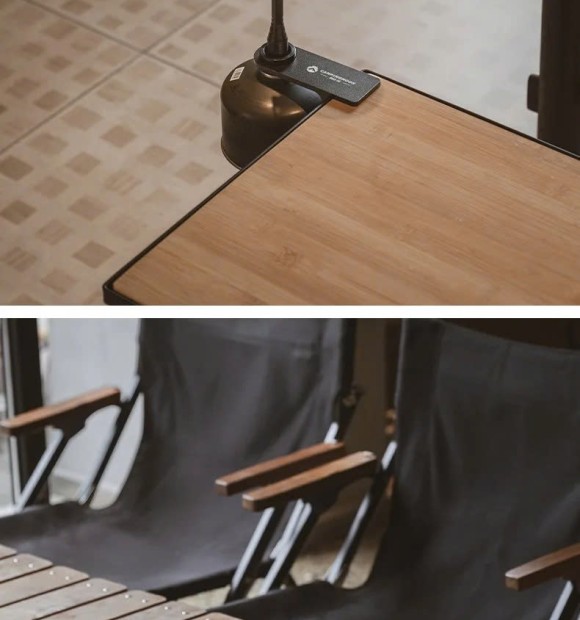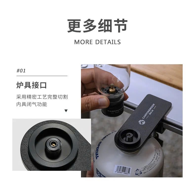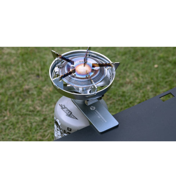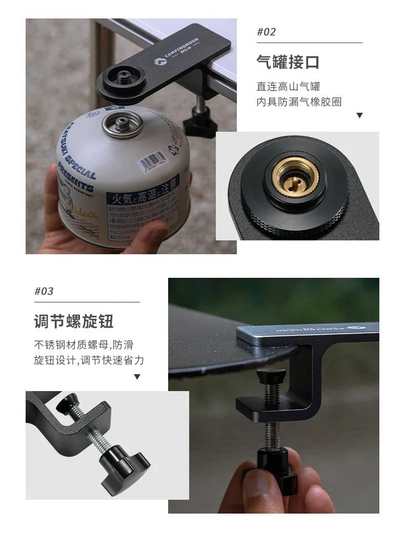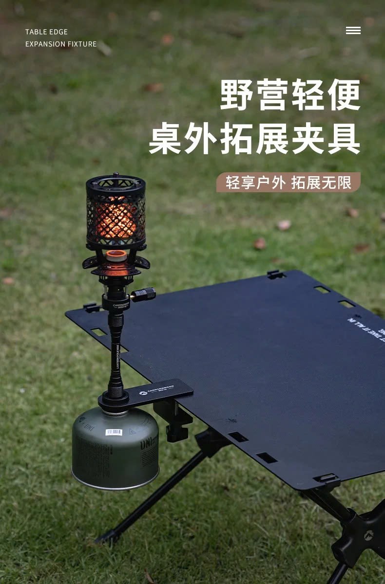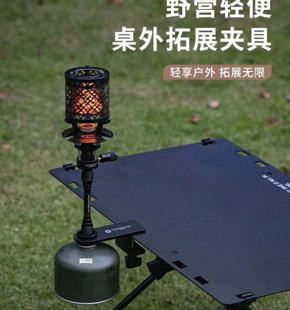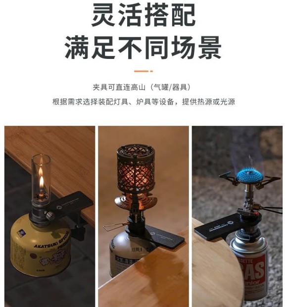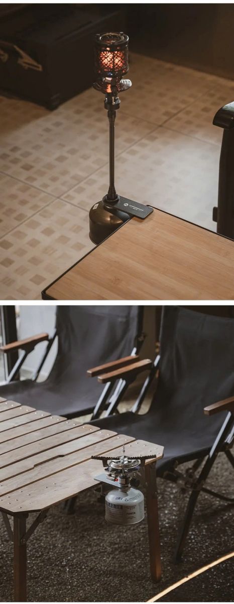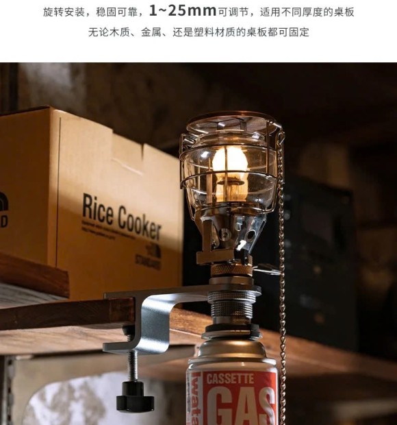 Có thể sử dụng làm chân đế cho đèn gas bằng cách gắn một phụ kiện kẹp vào bàn hoặc kệ, sau đó đặt trụ đèn lên.