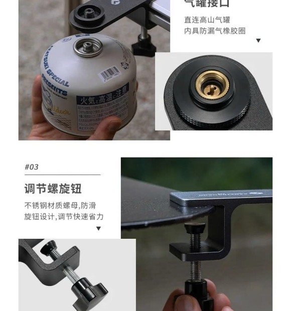 Vì gas và đèn gas thường nặng, phần kẹp sử dụng cấu trúc kẹp đơn giản, cứng cáp.