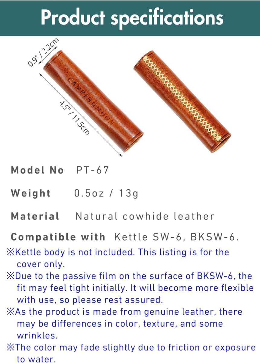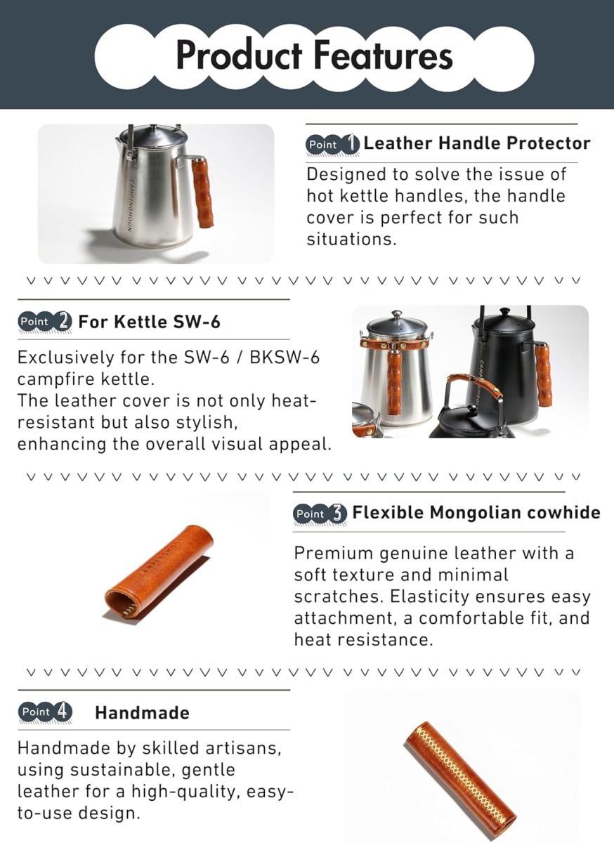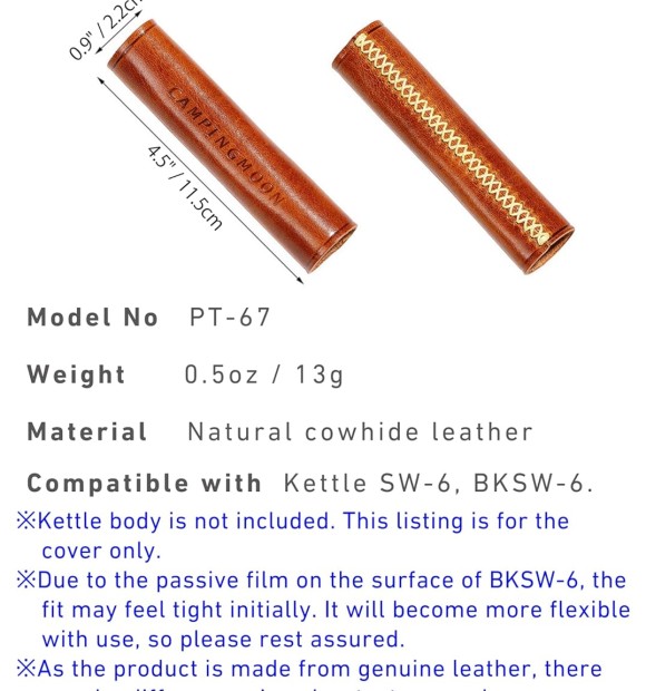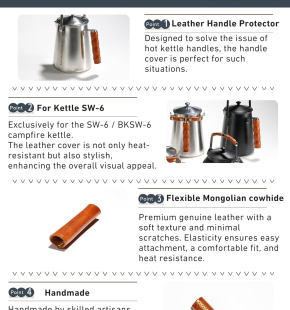 【Dành cho ấm đun nước SW-6】Dành riêng cho ấm đun nước cắm trại SW-6 / BKSW-6. Vỏ bọc da không chỉ chịu nhiệt mà còn thời trang, tăng thêm vẻ đẹp tổng thể.