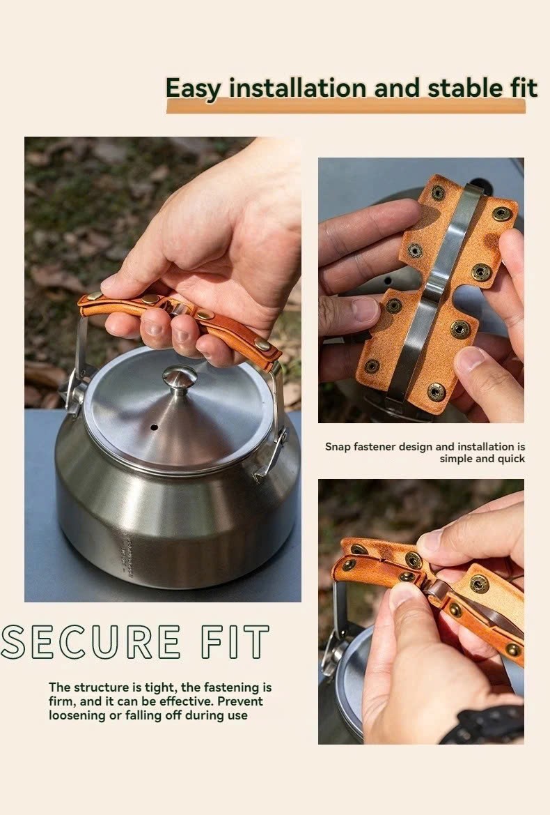 Được thiết kế để giải quyết vấn đề tay cầm ấm đun nước nóng, vỏ bọc tay cầm là lựa chọn hoàn hảo cho những tình huống như vậy. Càng sử dụng, màu sắc càng đậm và thể hiện cá tính riêng. Chỉ cần gắn vỏ bọc vào tay cầm ấm đun nước, vẻ ngoài của nó sẽ thay đổi, đồng thời tăng khả năng chịu nhiệt. Dành cho ấm đun nước SW-1 và SW-6. Vỏ bọc da không chỉ chịu nhiệt mà còn thời trang, nâng cao vẻ ngoài tổng thể. Da thật cao cấp với kết cấu mềm mại và ít trầy xước. Độ đàn hồi đảm bảo dễ dàng gắn vào, vừa vặn thoải mái và khả năng chịu nhiệt tốt. Các nút bấm bằng đồng thau chất lượng cao mang lại sự chắc chắn, trong khi quá trình lão hóa của da tạo thêm cá tính và tăng cường độ bám dính.