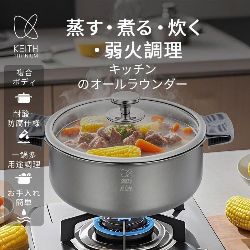 - Nồi titanium nắp thuỷ tinh KEITH Titanium Ti8125 - 5500ml