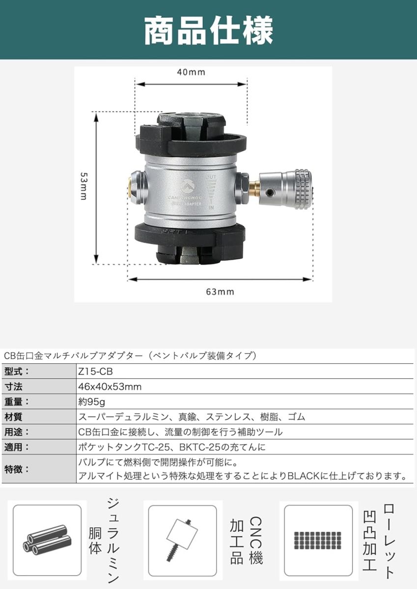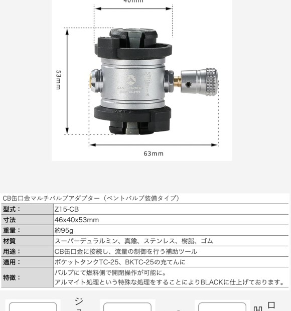 Bộ chuyển đổi mở bình có thể được kết nối trực tiếp từ bình CB vào bình chứa. Sản phẩm nhỏ gọn và giá cả phải chăng, vì có thể kết nối mà không cần các bộ phận khác.