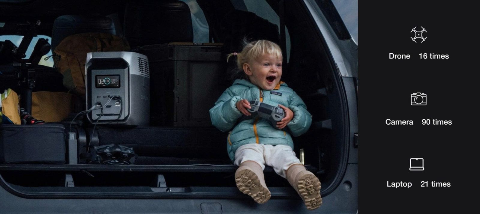 Năng lượng mặt trời: Với công suất đầu vào lên đến 500W. Sạc đầy DELTA 3 (1500) chỉ trong 3,5 giờ