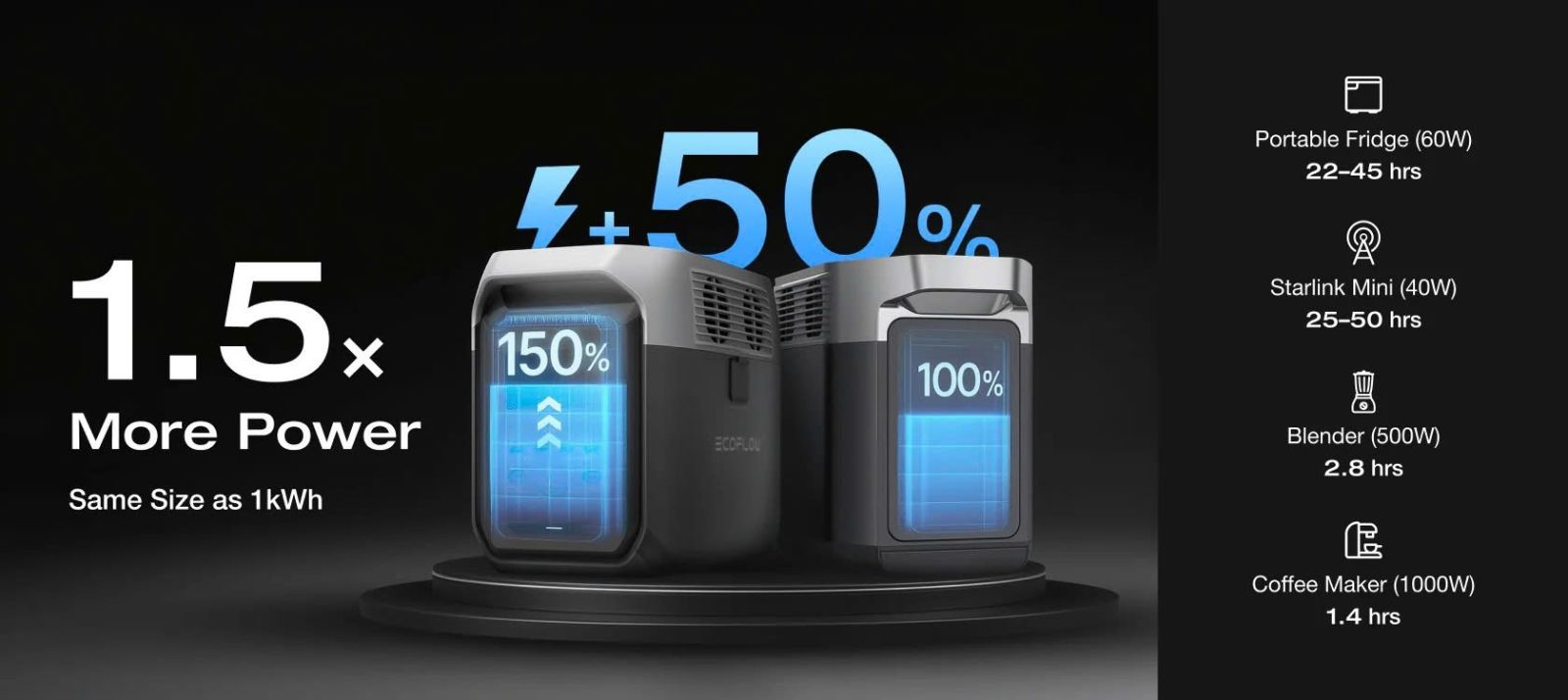 Dung lượng lớn 1 536 Wh – mạnh mẽ hơn ~1,5 lần so với các mẫu 1 kWh cùng kích thước.
