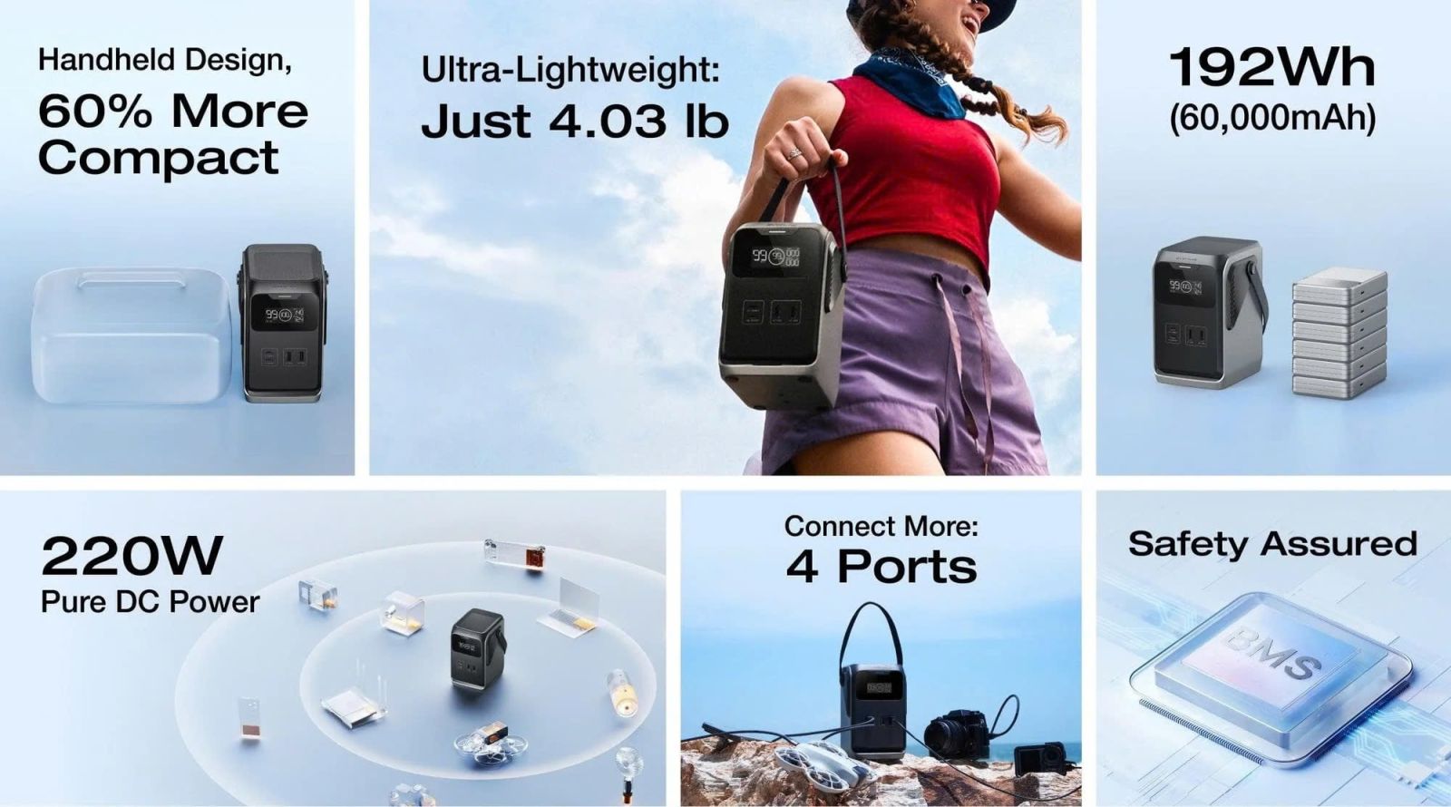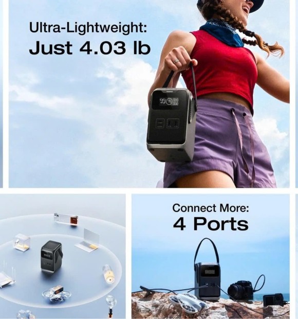 Nguồn điện cả ngày trong lòng bàn tay: Dung lượng lên đến 288Wh, tương đương 9 pin sạc dự phòng – đủ cho một ngày cắm trại, câu cá hay quay phim.
