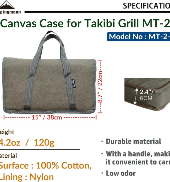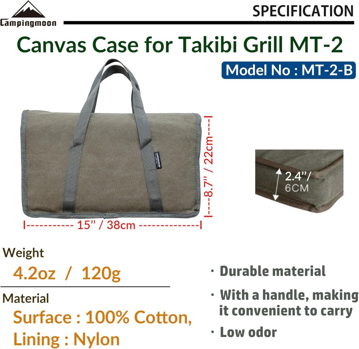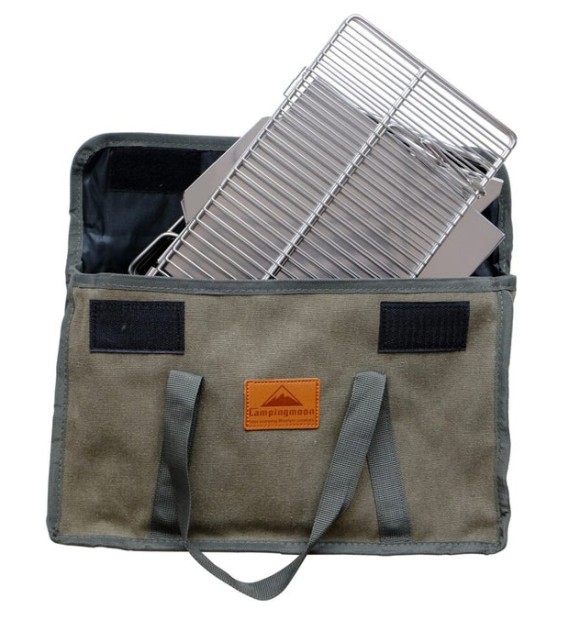 Túi đựng bằng vải canvas dùng để đựng bếp nướng cắm trại CAMPINGMOON MT-2. Cũng có thể dùng để đựng các vỉ nướng cắm trại khác có kích thước khoảng 12'' x 17'' / 31×31cm.